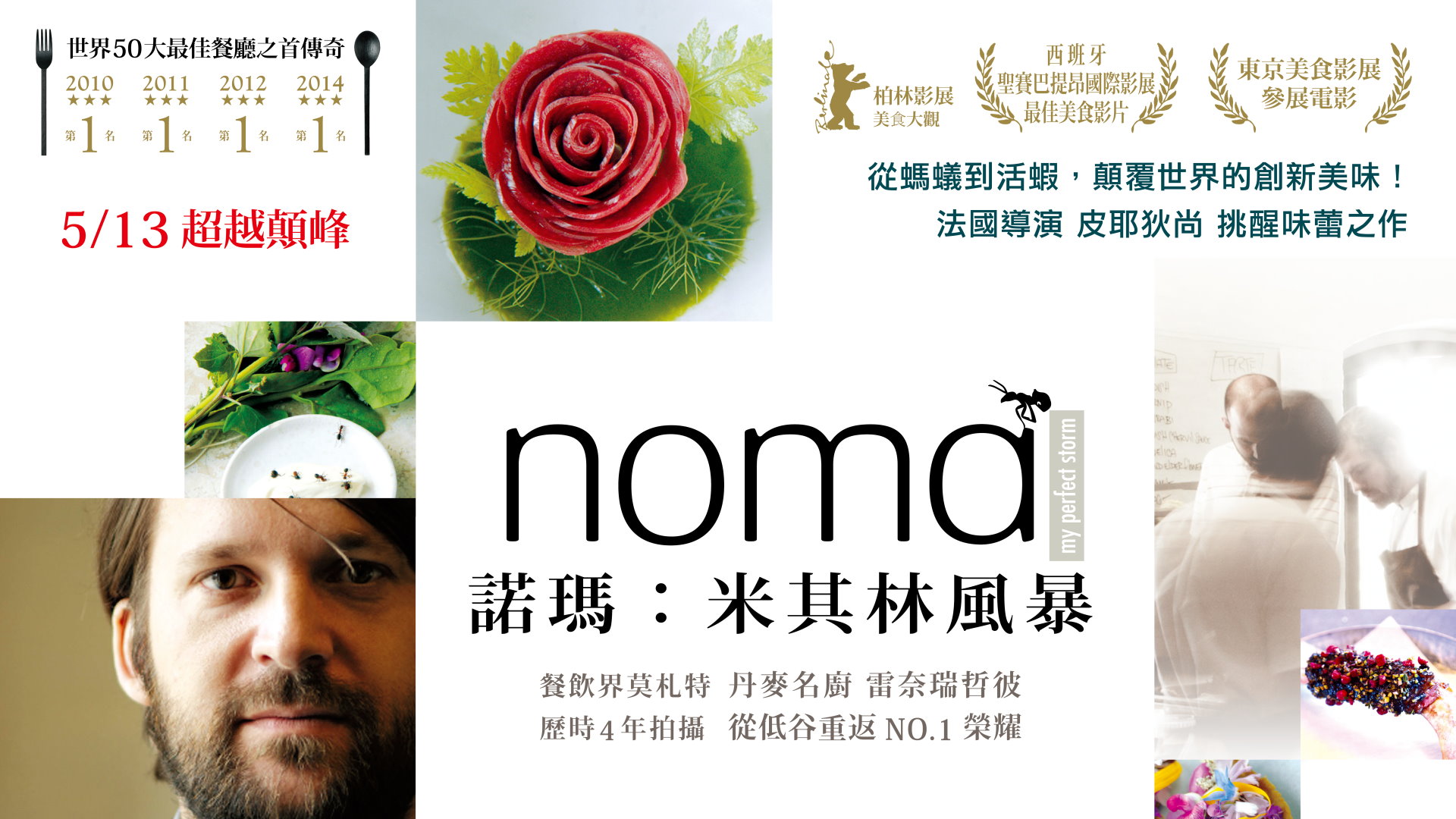 美味餐廳很多,但四度排名世界第一、位居哥本哈根的諾瑪餐廳(NOMA),卻無疑是最頂尖、最具戲劇性故事的一家餐廳。在2013年中毒事件爆發之前,諾瑪曾三度榮膺世界TOP 50最佳餐廳第一名殊榮,並於事件落幕隔年,重新奪回冠軍寶座。電影《諾瑪:米其林風暴》(NOMA: My Perfect Storm)就描述這家從螞蟻到活蝦都能搬上餐桌的餐廳,它所遭遇風暴的箇中曲折,以及主廚雷奈瑞哲彼(Rene Redzepi)的人生故事。片中總計呈現了諾瑪餐廳最招牌的28道米其林料理,被媒體形容為「米其林等級的精采電影」,連續入選柏林影展美食大觀、日本美食影展,以及西班牙聖賽巴提昂國際影展,並勇奪最佳美食影片大獎。